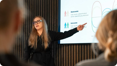Når det hele er på plads, samler vi jer til en præsentation. Vi gennemgår strategien punkt for punkt – med eksempler, spørgsmål og konkrete anbefalinger. Så alle ved, hvor I skal hen, og hvordan I kommer derhen. Det hele leveres i et format, I kan bruge igen og igen.